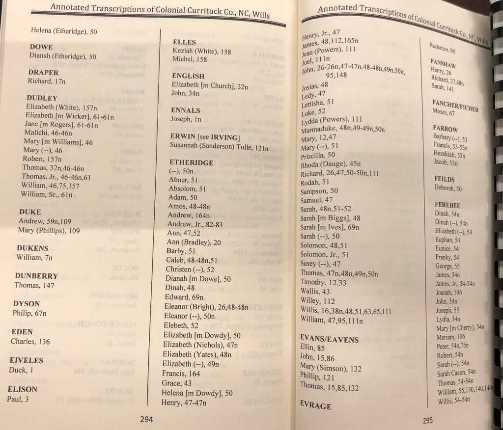 pg 74 – 75 Henry Etheridge Currituck, will dated 14 Mar 1742/3 will proved 5 July 1743