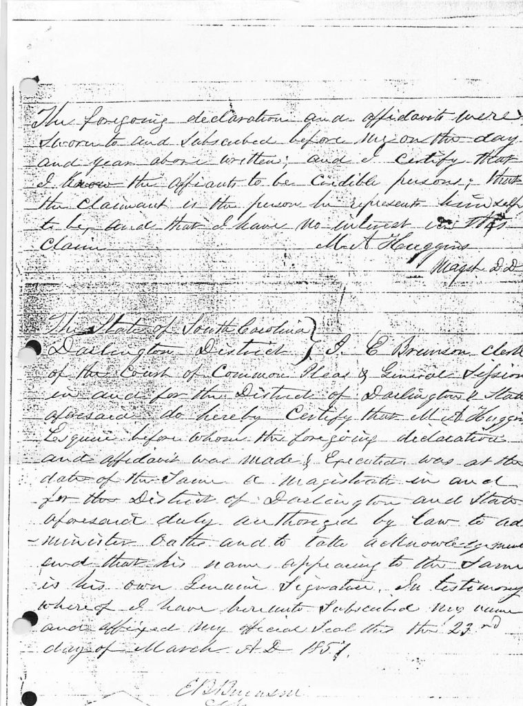John Sparrow War 1812 Bounty Land Applications Darlington, South Carolina