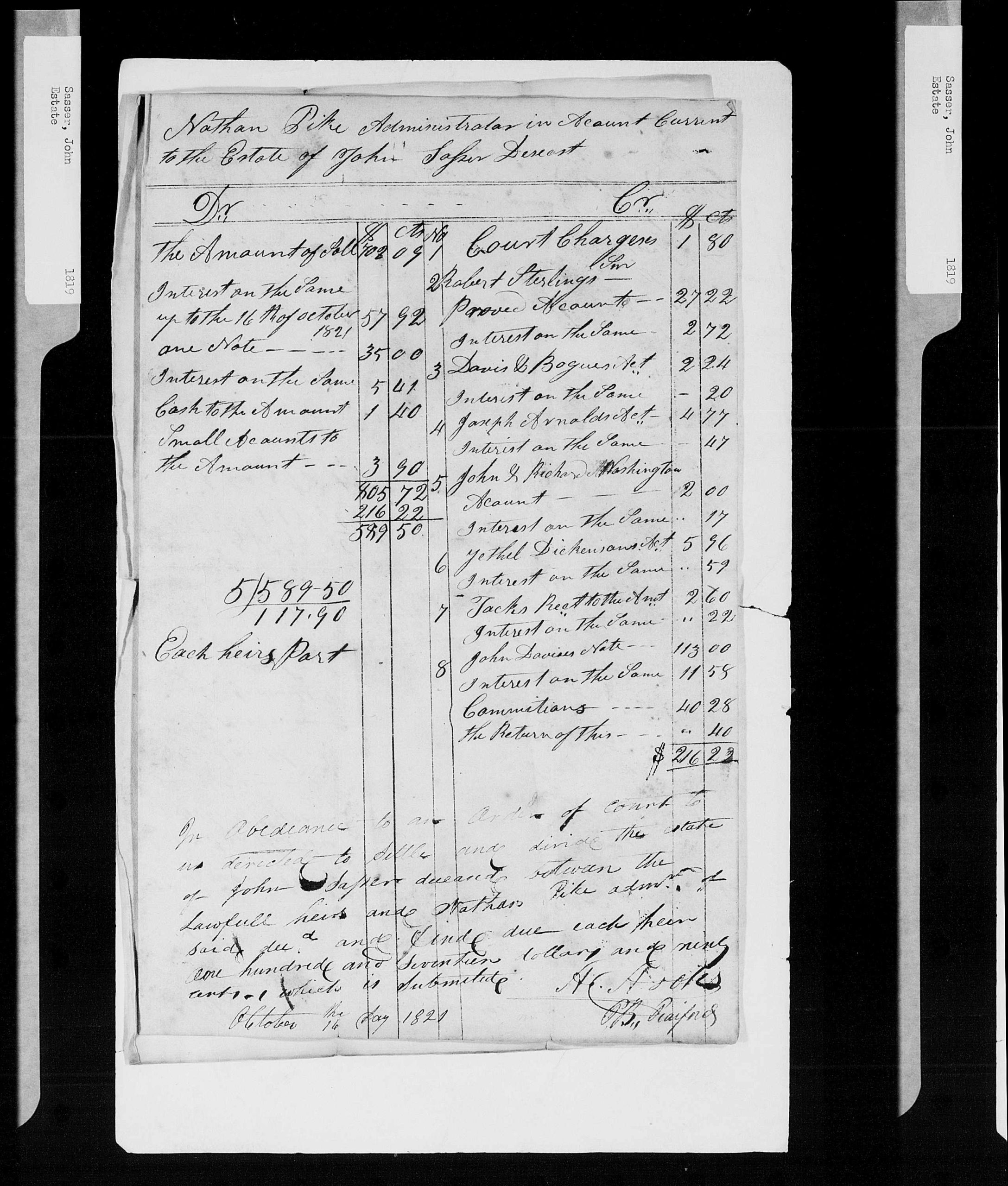 The Estate of Smith Sparrow Deceased in Acct. with Francis Sparrow, Adminr