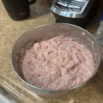 Put turkey in a bowl of some lukewarm water. Mix the turkey into the water with hands until smooth and all the turkey chunks are gone. (see picture)